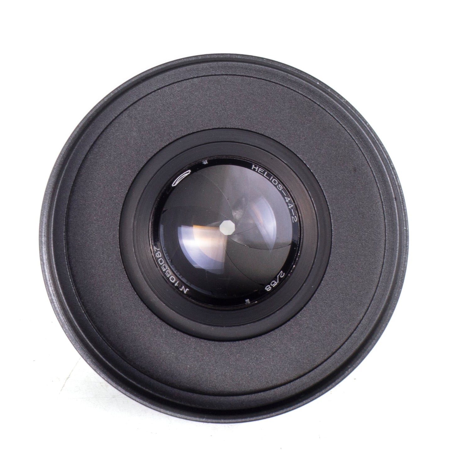 Here you can buy early vintage Zebra Helios-44-2 from MMZ/ BelOMO factory. Lens in is in good condition, compatible with all PL mount cameras. You can use it with any digital or film cameras with adapters from PL mount to your mount. Focus and aperture rings move freely, without resistance, aperture was de-clicked and preset removed (you should turn only one ring for changing aperture value). Glass is in good condition, free of fungus, but may have very minor cleaning marks, which will not affect the final image. Lens was cleaned, adjusted and re-lubricated. This offer includes lens, front and rear caps, 80mm OD cine lens hood (with 77mm filter thread) and 2x 0.8 rubber follow focus gears.